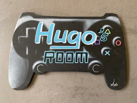 Décoration chambre enfant ado plaque manette jeux vidéo avec prénom personnalisé.