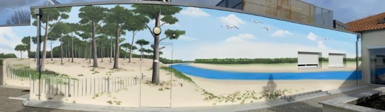 Fresque en trompe l'oeil d'un bord de plage de sion. Réalisation à l'ehpad talmont saint hilaire, Vendée.